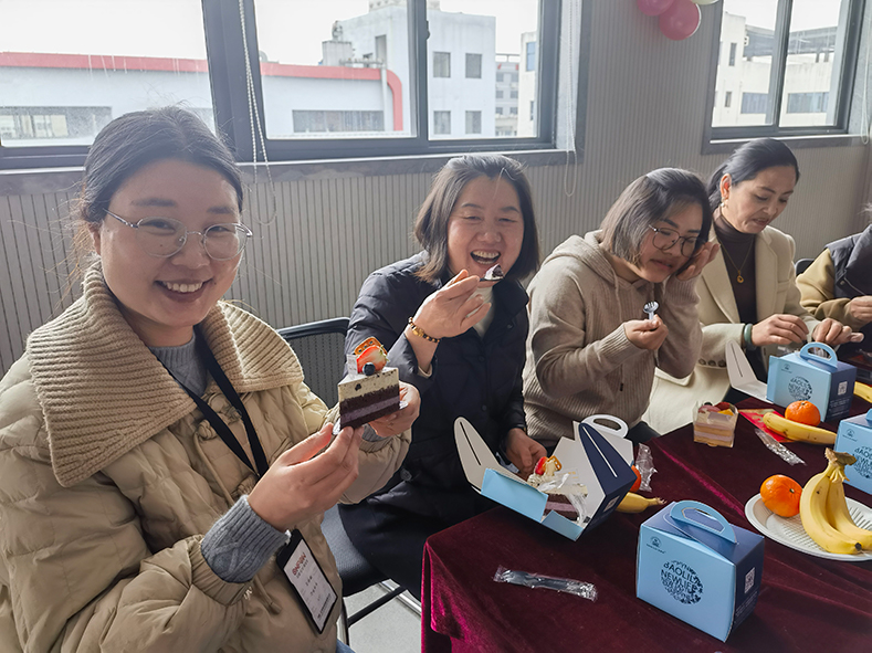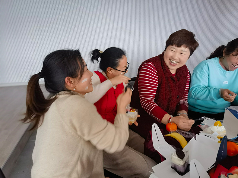 进入吃蛋糕环节,大家其乐融融分蛋糕、吃水果,有说有笑,开心的氛围感染了每一个人。